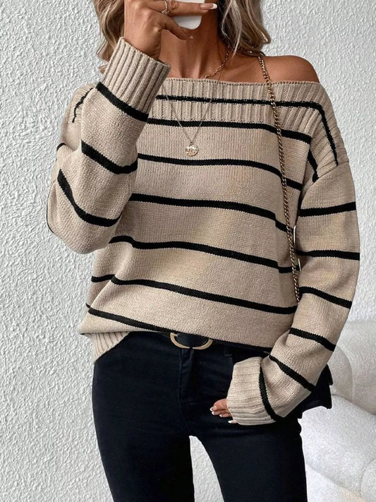 Stripe Thermal Knit Drop Shoulder Casual Top
