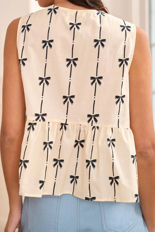 Tie Straps Wave Stripes Textured Eyelet Knitted Vest