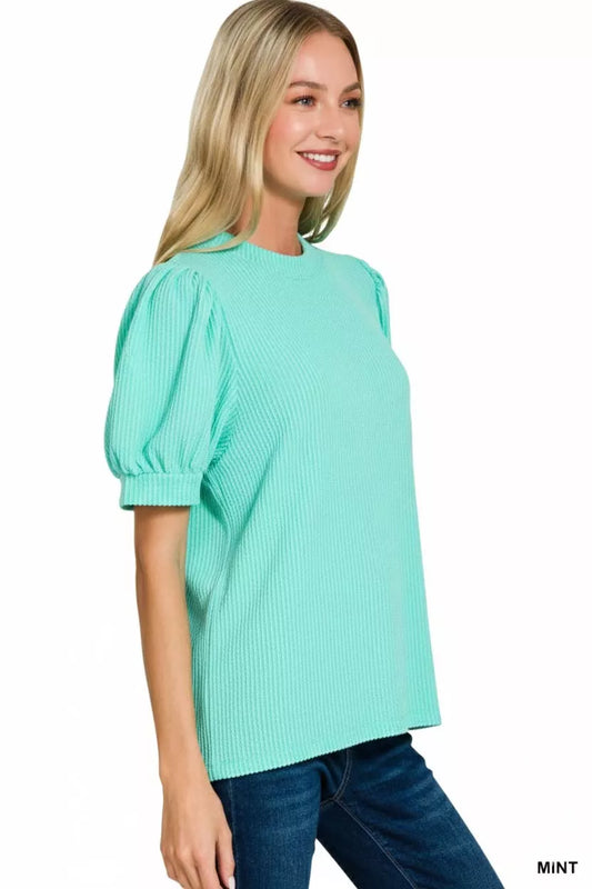 Zenana Mardi Gras Raised Rib Contrast Trim Top