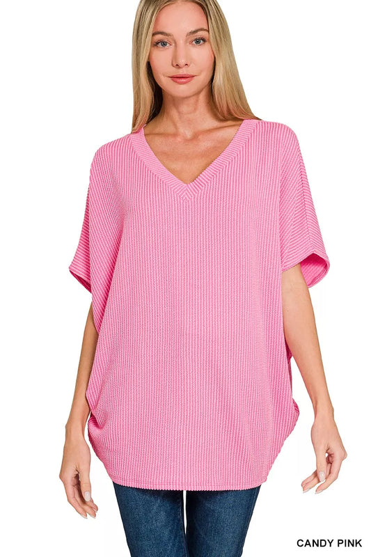 Zenana Ribbed Rayon Span Dolman Sleeve Top