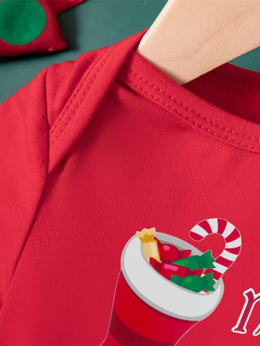 Children's Christmas Striped Bodysuit and Dress Set with Headband