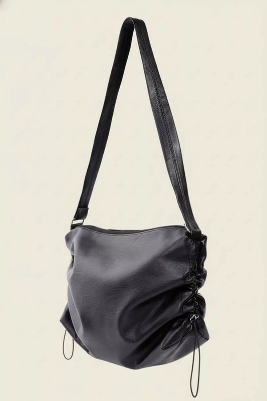 Fame Ruched Detail Faux Leather Shoulder Bag