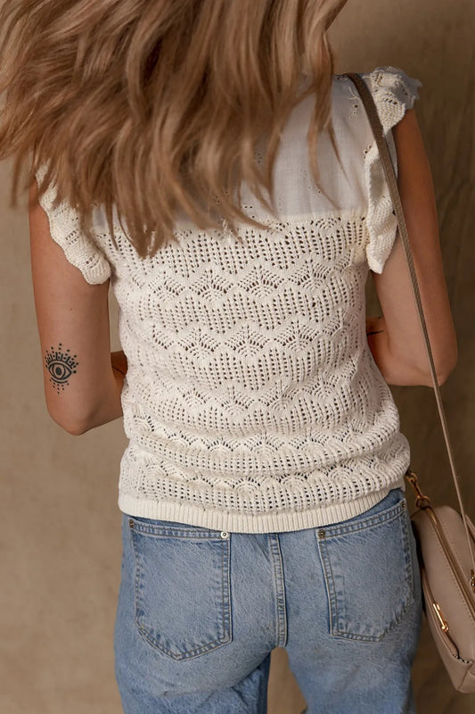 Embroidered Patchwork Hollow Out Knitted Ruffle Sweater Vest
