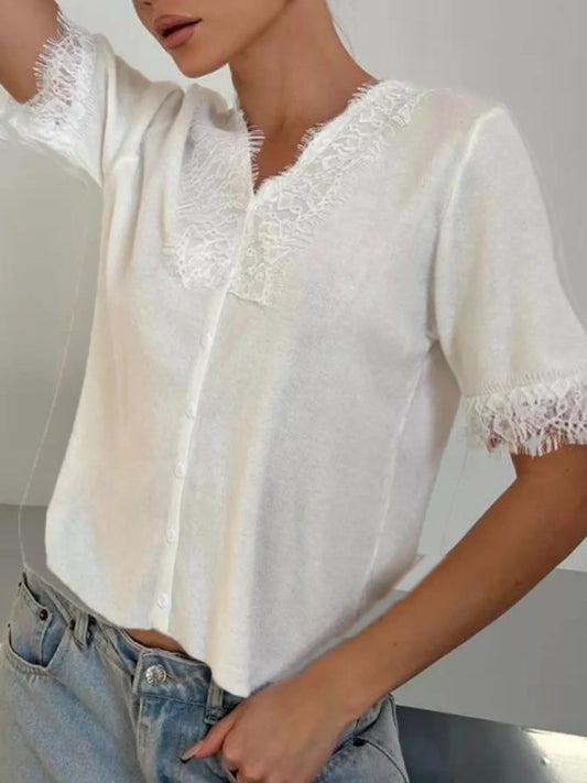 Lace Trim Button-Down Cardigan