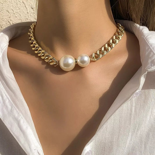 18K Gold-Plated Pearl Earrings and Necklace Jewelry Set