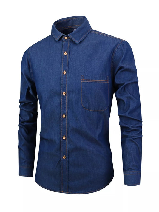 Men's Full Size Button Up Long Sleeve Denim Shirt Plus Size