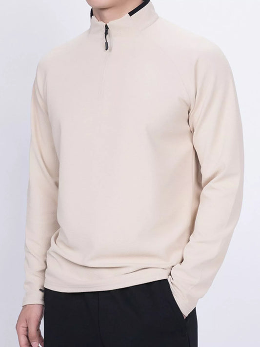 Men's Plus Size Casual Long Sleeve Quarter Zip T-Shirt