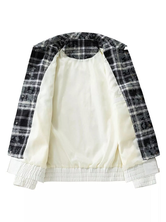 Men's Plus Size Plaid Collar Zip-Up Bomber Jacket